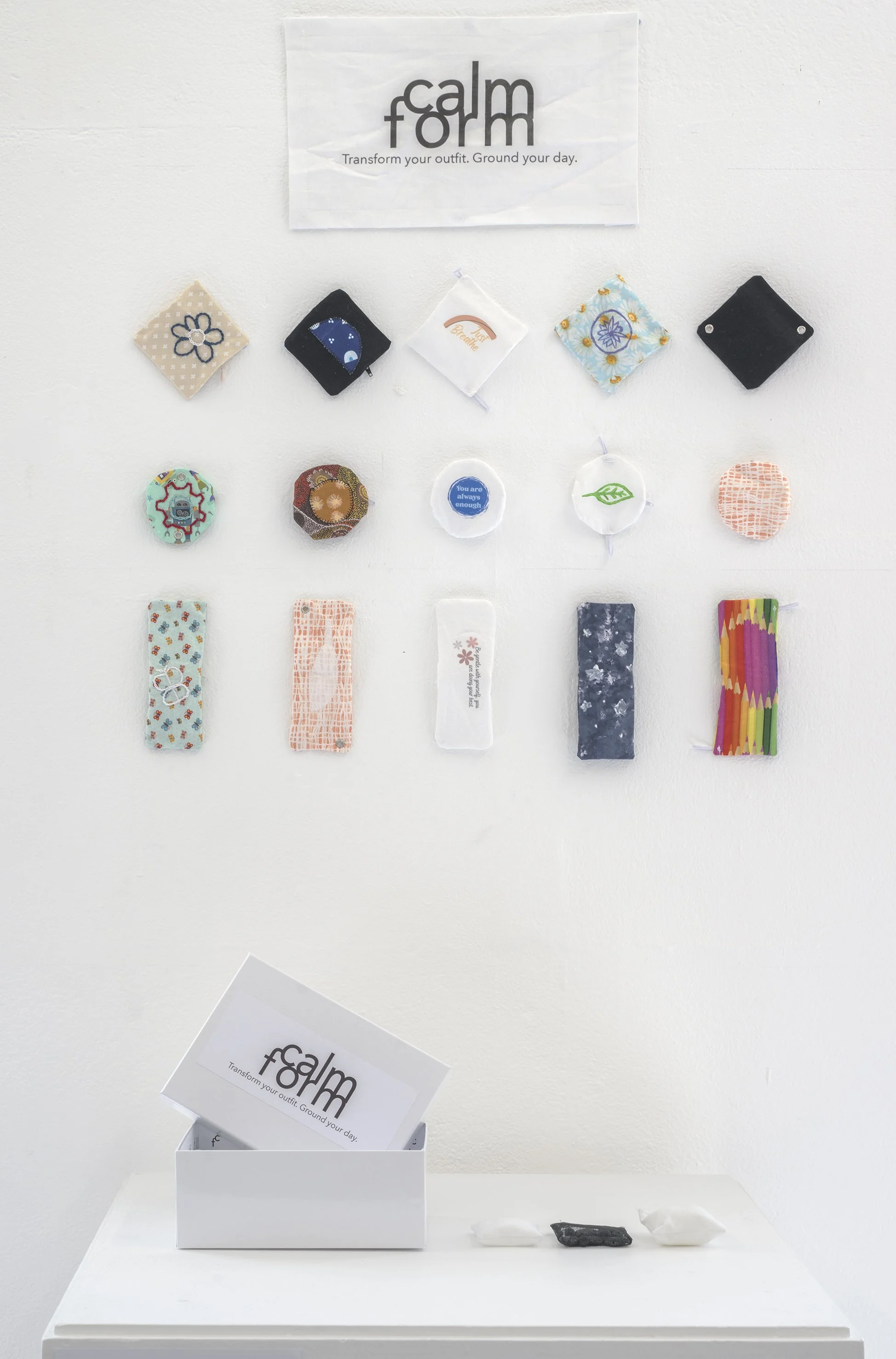 The brand name is ‘CalmForm’ with the slogan being; ‘Transform your outfit. Ground your day’. This branding is used to identify the aim of the product and how it can assist someone with anxiety in their everyday lives.