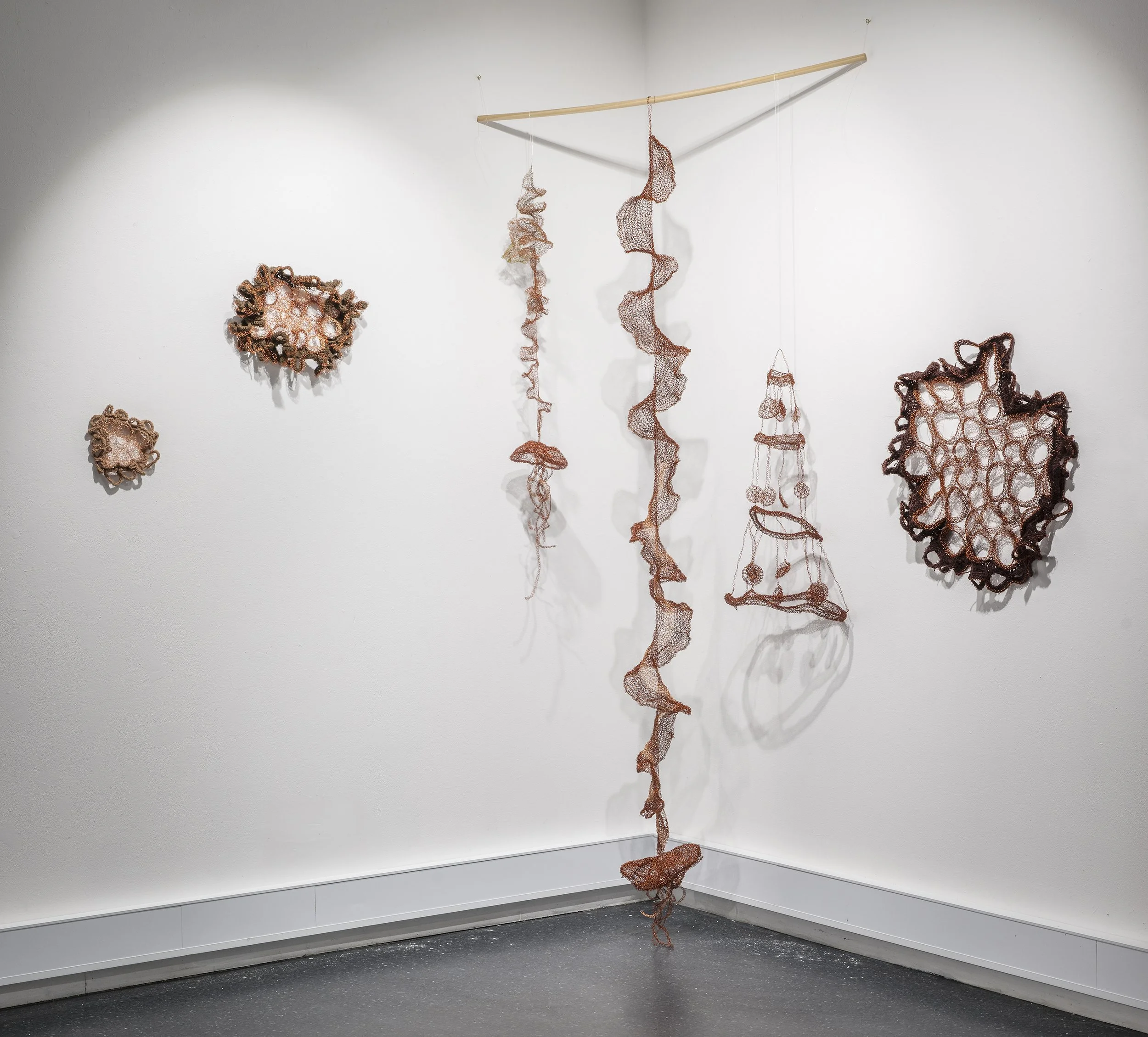 Ruby Davies, Tides of Memory, 2025, copper wire, wool, fishing line, dimensions variable.
